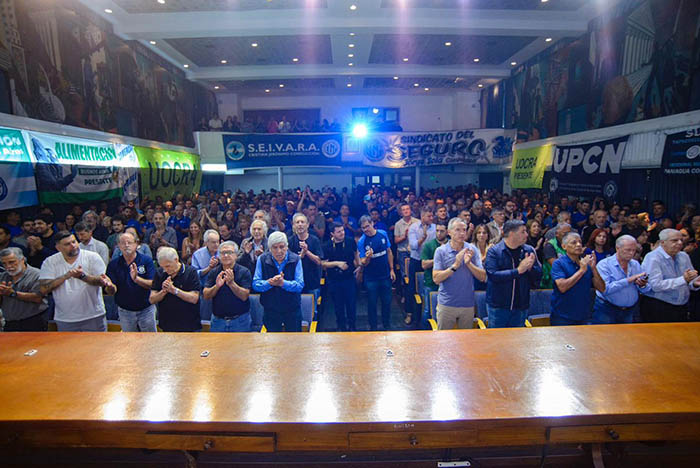 El encuentro contó con la presencia de los tres Secretarios Generales de la CGT, los compañeros Jorge Sola (Sindicato del Seguro), Cristian Jerónimo (Vidrio) y Octavio Argüello (Camioneros), junto a una numerosa audiencia de compañeros dirigentes que asistieron representando a sus respectivas organizaciones sindicales.