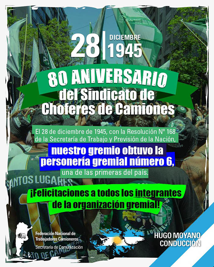 El 28 de diciembre de 1945, con la Resolución Nº 168 de la Secretaría de Trabajo y Previsión de la Nación, nuestro gremio obtuvo la personería gremial número 6, una de las primeras del país.