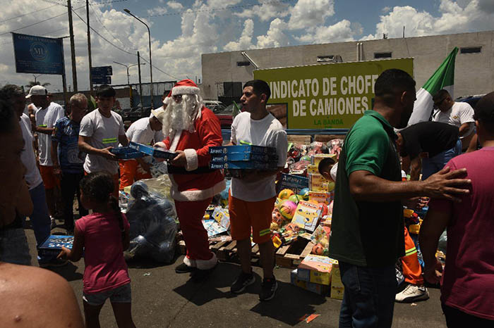Felicitamos a los compañeros por esta gran iniciativa, pese a las altas temperatura que están ocurriendo en Buenos Aires. Esta acción solidaria seguramente va a hacer una navidad mucho más feliz para quienes se acercaron a donde estaban los camioneros de San Justo.