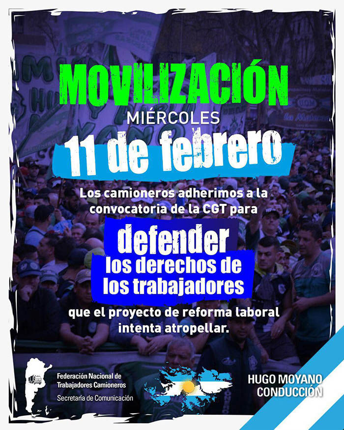 Los camioneros adherimos a la convocatoria de la CGT para defender los derechos de los trabajadores que el proyecto de reforma laboral intenta atropellar.