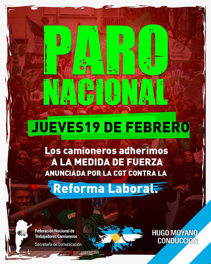 Los camioneros adherimos a la medida de fuerza anunciada por la CGT contra la Reforma Laboral.