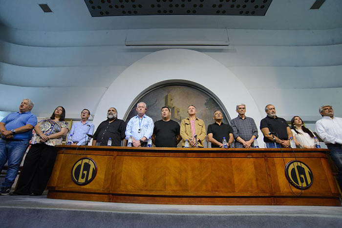 El lunes 23 de marzo se reunieron los Secretarios Generales de la CGT; Jorge Sola (Seguros), Cristian Jerónimo (Vidrio) y Octavio Argüello (Camioneros) en el edificio de la Central Obrera junto a delegaciones Internacionales junto a los Secretarios Generales de la Central Sindical Internacional y de la Confederación Sindical de las Américas para conmemorar el 50 aniversario del Golpe de Estado de Argentina de 1976.